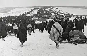 In July 1942 the three alpine division, grouped together in the Alpine Army Corps, arrived in Eastern Ukraine, from where they marched eastwards towards the Don river. The Italian 8th Army covered the left flank of the German 6th Army, which spearheaded the German summer offensive of 1942 towards Stalingrad. On 12 December 1942 the Red Army commenced Operation Little Saturn, which, in its first stage, attacked and encircled the Italian II Army Corps and XXXV Army Corps, to the southeast of the Alpine Army Corps. On 13 January 1943, the Red Army launched the second stage of Operation Little Saturn with the Voronezh Front encircling and destroying the Hungarian Second Army to the northwest of the Alpine Army Corps.[8][16][20][21][22]