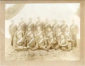 In November 1863 the 1st, 3rd and 4th Dorsetshire AVCs (the 2nd having been disbanded in 1861) joined the 1st Hampshire Admin Brigade, staying until 1866 when they transferred to the 1st Devonshire Admin Brigade. A new 4th Hampshire AVC was formed at Bournemouth on 29 November 1866 (a 5th (Dockyard) Hampshire AVC may have been formed on 18 August 1860, but had quickly been disbanded). The Dorsetshire AVCs rejoined the 1st Hampshire Admin Bde from January 1873, by which time the 5th and 6th Dorsetshire AVCs had been formed, although the 3rd Dorsetshire was disbanded in 1876.[4][5][6][7][8]