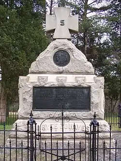 6. (May 26, 1836 – July 7, 1864) A Massachusetts native who had served in the New York State Militia prior to enlisting in the Union Army alongside his father, Gordon Winslow as regimental chaplain, and younger brother, Gordon Winslow, Jr. a lieutenant. Due to his experience with the militia (like several other company officers), he was a martinet who was unpopular with but respected by the enlisted men.[14] He rose through promotion to command of the regiment shortly before Second Battle of Bull Run. As commander at demobilization, he began recruiting for the 5th New York Veteran Infantry regiment. During this time in New York city, he was recalled to New York City to suppress the New York City draft riots. Rejoining the Army of the Potomac with the full-strength 5th New York Veterans, during the Battle of Cold Harbor, Winslow was mortally wounded at Bethesda Church on June 2, 1864. Brought back to Alexandria on a hospital steamer (during which time, the elder Winslow drowned after falling off the steamer) and eventually died of his wounds at the Mansion House hospital on July 7, 1864.