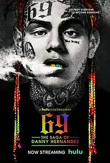 69: The Saga of Danny Hernandez is a 2020 true crime documentary film about Daniel Hernandez, a rapper, songwriter, social media personality, and convicted felon who is known professionally as 6ix9ine, or Tekashi69.[1] The film details Hernandez's rise as a musician, as well as his gang affiliation and multiple arrests.[2][3][4] It was directed by Vikram Gandhi and released on Hulu on November 16, 2020.[5][6]