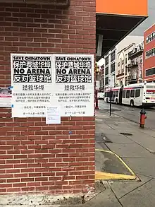 In January 2023, more than 40 Chinatown community groups, nonprofits, and business organizations announced the "Chinatown Coalition to Oppose the Arena". This coalition has the assistance from the Asian American Legal Defense and Education Fund.[19]