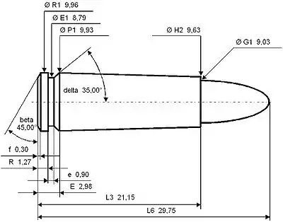 The common rifling twist rate for this cartridge is 254 mm (1 in 10 in), 4 grooves, Ø lands = 8.79 mm, Ø grooves = 9.03 mm, land width = 3.80 mm and the primer type is small pistol.