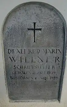 Alfred Maria Willner was cremated at Feuerhalle Simmering in Vienna, where also his ashes are buried.
