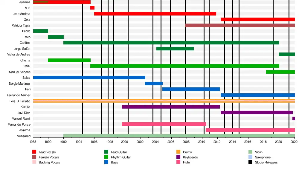 Members | Txus di Fellatio (1988–) Carlos Prieto "Mohamed" (1992–) Victor de Andrés (2020–) Fernando Mainer (2012–) Josema (2010–) Patricia Tapia (2007–) Rafa Blas (2023–) Manuel Seoane (2018–) |
