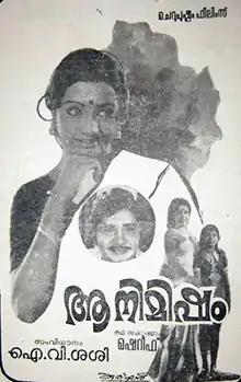 Aa Nimisham (transl. That Moment) is a 1977 Indian Malayalam-language drama film, directed by I. V. Sasi and produced by K. J. Joseph. The film stars Madhu, Sheela, Sridevi and Kaviyoor Ponnamma . The film has musical score by G. Devarajan.[1][2][3][4] The film was remade in Tamil as Nool Veli and in Telugu as Guppedu Manasu.