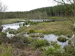 The SSSI citation notes that the site is an acidic wetland of particular importance because of two mature Schwingmoors, namely South Moss and Shemmy Moss. A Schwingmoor or quaking bog occurs when plants such as Sphagnum mosses and cotton grass Eriophorum sp. colonise the surface of a waterbody and form a floating mat of vegetation.[3]