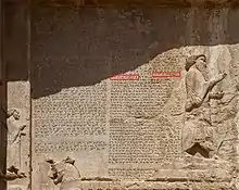- ↑ "The word dipi appears in the Old Persian inscription of Darius I at Behistan (Column IV. 39) having the meaning inscription or "written document" in Congress, Indian History (2007). Proceedings - Indian History Congress. p. 90.