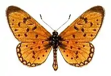 - f. gracilis Wichgr. [now forma of Acraea violarum] only differs in having the marginal band of the hindwing narrow, 1 mm. in breadth. Mashonaland.[4]