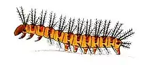 - The larva of zetes is orange-yellow with a dark red transverse band dorsally on each segment; head glossy red; spines black; lives in Natal on Passiflora. Pupa reddish white with black markings.[4]
