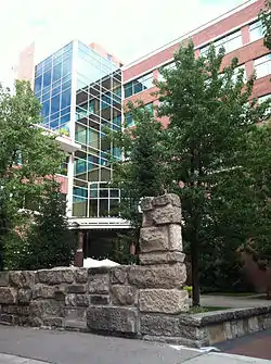 ![]() Remains of the building's facade, with the modern Plaza 121 building in the background. | |