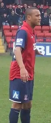 He signed for York permanently on 26 January for an undisclosed fee on a contract until the end of 2009–10 season.[46][47] His first appearance after returning came as a 74th-minute substitute in a 1–1 draw against Altrincham on 27 January.[38][48] A bruised foot picked up in a reserve-team match meant he was unable to play for York against Grays Athletic in April.[49] He was forced into missing some matches towards the end of 2008–09 due to concerns over his baby daughter,[50] which he finished with 17 appearances and two goals for York.[38] Smith made his first appearance of 2009–10 after being introduced as an 86th-minute substitute against Rushden & Diamonds on 11 August, the second match of the season, which finished as a 0–0 draw.[51] In the following match, he came on in the 87th minute and played as a striker,[52] scoring York's second goal in a 2–0 victory over Forest Green Rovers.[53] Soon after this match, he suffered from sciatica during a training session.[54] He featured as a substitute in York's play-off semi-final first leg victory over Luton Town, which finished 1–0, with the tie ending 2–0 on aggregate.[55][56] After finishing the season with 34 appearances and two goals for York[57] he entered negotiations with the club over a new contract.[58]