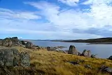 Adaminaby /ædəˈmɪnəbi/[3] is a small town near the Snowy Mountains north-west of Cooma, New South Wales, Australia, in the Snowy Monaro Regional Council. The historic town, of 301 people at the 2016 census,[1] is a trout fishing centre and winter sports destination situated at 1,017 metres (3,337 ft) above sea level. Economic life is built around tourism and agriculture–the town serves as a service point for Selwyn Snowfields and the Northern Skifields. It is also a popular destination for horse riders, bushwalkers, fly-fishermen and water sports enthusiasts as well as a base for viewing aspects of the Snowy Mountains Scheme.[4]