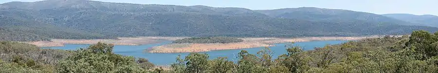 The most momentous episode in the town's history, came with the construction of the vast network of tunnels and dams of the Snowy Mountains Hydro-Electric Scheme, which began at Adaminaby in 1949.[11] A lake nine times the volume of Sydney Harbour eventually flooded the valley in which the original townsite lay. A prolonged drought saw the ruins of the old township begin to resurface in April 2007,[12][13] attracting the attention of global media – and even comparisons to the mythical city of Atlantis.[14][15]