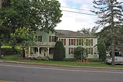 Adams-Ryan House is a historic inn located at Adams Basin in the town of Ogden in Monroe County, New York. It was constructed about 1825 and is a rare surviving example of an inn that operated along the towpath of the Erie Canal. The original structure reflects a vernacular Federal style. Later alterations added vernacular Greek Revival style details. Throughout the 19th century there were several additions to the original structure and in 1912 it underwent further alterations and remodeling. It ceased operating as an inn in 1916 and was virtually abandoned between 1939 and 1972. Also on the property are a contributing barn and privy.[2] It is now operated as a bed and breakfast.