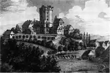 Adelebsen and the castle were partly burned down in 1466 by Ernst I of Schauenburg, Bishop of Hildesheim, during a regional feud.[4][8] Originally erected as a fortress, the castle was rebuilt in 1596 with an impressive façade and numerous large rooms with windows, suitable to serve as a noble residence.[9]
