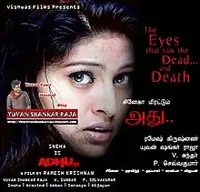 Adhu (transl. That) is a 2004 Tamil-language horror film directed by Ramesh Balakrishnan, starring Sneha as a spirit possessed girl. The film, that has Aravind, a newcomer, Suha, Kazan Khan and Vijayan in supporting and Abbas in a cameo role, is a remake of the 2002 Hong Kong-Thai-Singaporean film The Eye. The film, with music scored by Yuvan Shankar Raja and cinematography by P. Selvakumar, released on 15 October 2004 and received generally negative reviews and is considered a box-office disaster.[1]