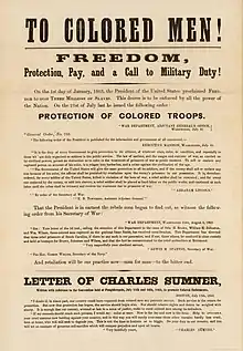 - ↑ "Teaching With Documents: The Fight for Equal Rights: Black Soldiers in the Civil War". National Archives. The U.S. National Archives and Records Administration. Retrieved December 3, 2015.