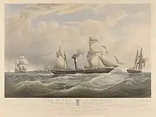 The three vessels, the steamers Albert, Wilberforce, and Soudan, were made by Laird of Liverpool. The commander was Henry Dundas Trotter in the Albert, with William Allen in the Wilberforce and Bird Allen in the Soudan.[13] In Sierra Leone, interpreters joined the expedition.[14] The expedition called at Cape Coast in July to drop off the Ghanaian princes Nkwantabisa and Owusu-Ansa, who had been in England since 1836.[15]
