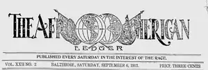 In 1905, the Afro-American urged its readers to vote against the Poe Amendment, a piece of legislation meant to disenfranchise black voters.[6] When the Strauss Amendment followed in 1908, the paper persisted, attacking advocates of the amendment.[7]