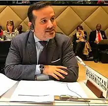 He has also attended multilateral forums including the IMF 2020 Annual Meetings,[27] the 2018 Geneva Conference on Afghanistan,[28] and the World Bank Seminar on Policy Challenges for the Financial Sector;[29] as well as spoken at numerous think tanks, including describing economic reforms at the Wilson Center (2018),[30] investment opportunities at the Heritage Foundation (2019),[31] and the collapse of the government at the Atlantic Council (2021).[32]