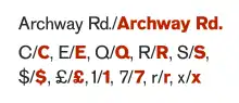 It is important to note, however, that as the weights and sizes of Akzidenz-Grotesk were cut separately not all these features will appear on all styles.[83] For instance, the 't' of the Schmalhalbfett weight only has no base, as it was designed separately and not by Berthold.[3]