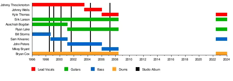 Past members | Kyle Thomas Erik Larson Ryan Lake Mikey Bryant Bryan Cox Johnny Throckmorton Johnny Weills Asechiah Bogdan Bingo Tunnel John Peters |