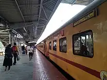 - Kannur-Alappuzha Express parked on platform 2 of Thrissur railway station.