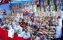 The largest Alasitas fair (or Alacita, Alacitas, Alasita; Spanish: Feria de las Alasitas) is an annual month-long cultural event starting on 24 January in La Paz, Bolivia. It honours Ekeko, the Aymara god of abundance, and is noted for the giving of miniature items.[1] Other fiestas and ferias throughout Bolivia incorporate alasitas into religious observances: The Fiesta of the Virgin of Copacabana and the Fiesta of the Virgin of Urkupiña, for example.[2]