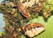 It was found that attacks took place both during the day and at night with the operculum of the snail being targeted.[2] The larva spent up to 24 hours inside the shell devouring the soft tissues.[2] Sometimes several first-instar larvae attacked a single snail at the same time.[2] On some occasions, the snails H. aspersa and C. pictum emitted a protective foam which enabled them to thwart the attack.[2]