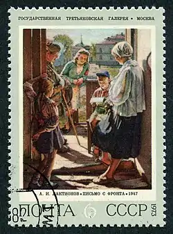 Aleksandr Ivanovich Laktionov (Russian: Александр Иванович Лактионов; 29 May 1910 – 15 March 1972) was a Socialist realism painter in the post-war Soviet Union. His meticulous and almost photo-real style was popular, but courted controversy among art critics and other artists.