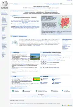 As of December 2023, this edition has about 30,100 articles[1] and is the 114th largest Wikipedia by number of articles.[2] Contributors and users include people from Germany, Switzerland, Austria, France, Liechtenstein, and even a few Walser people from Italy.
