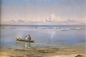 Ala Moana Beach, oil on canvas painting by Alfred Richard Gurrey, Sr., 1915