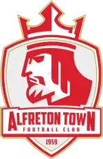 The club was formed in 1959 following the merger of Alfreton Miners Welfare and Alfreton United,[2] taking the name of a previous club that had played in the Midland League in the 1920s. A ground on North Street was provided by the council and the new club spent two seasons in the Central Alliance before switching to the Midland League in 1961.[3] Although they finished bottom of the league in their first season, they were league champions in 1969–70 and reached the first round of the FA Cup for the first time, taking Third Division Barrow to three replays before losing 2–0 at Deepdale.[3] After finishing as runners-up in 1971–72 they won the league again in 1973–74, a season in which they reached the FA Cup first round for a second time, losing to Blyth Spartans in a replay. Between 1972 and 1974 the club also won three League Cups in succession, resulting in them being awarded the trophy permanently by the league.[2] A third league title was won in 1976–77, and the club finished as runners-up again in 1980–81 and 1981–82.[3]