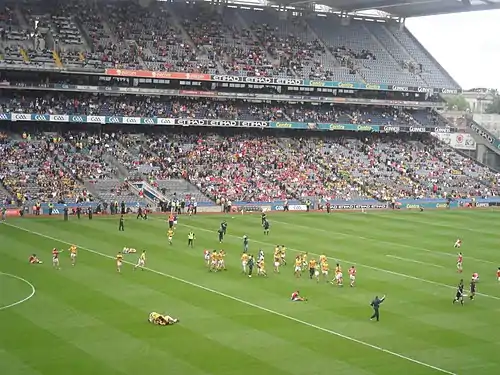 The 2012 All-Ireland Senior Football Championship Final took place at Croke Park on 23 September 2012, with Donegal emerging victorious. Having reclaimed the Ulster Senior Football Championship with wins over Cavan, Derry, Tyrone and Down, they met and bet Kerry in the All-Ireland quarter-final, in what was widely considered the game of the Championship.[2] They then overcame Cork in the semi-final and Mayo in the final in Jim McGuinness's second season in charge, allowing team captain Michael Murphy to hold the Sam Maguire Cup aloft.