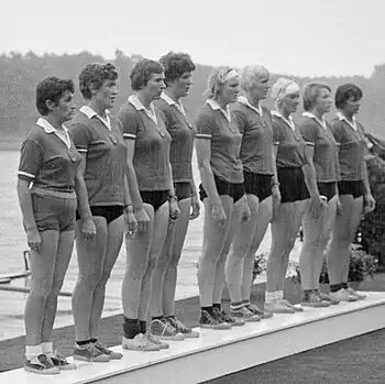 ![]() Soviet eight at the 1965 European Championships, Pervorukova is second from left | ||||||||||||||||||||||||
