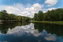 The Quaker area is the southwestern section of the park. Its attractions include Quaker Lake, the Mount Tuscarora Fire Tower, hiking trails, Science lake, Bear Caves, Thunder Rocks, the Quaker Amphitheater, and several campsites. The Cain Hollow campground is located on the Quaker side of the park.[3]