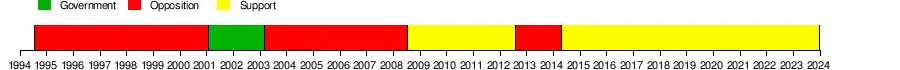 Year | Leader | Popular vote | % of popular vote | # | # of seats | Seat change | Coalition | Status |