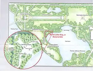 - ↑ Wheeler, Linda (December 5, 2000). "'Sacred Ground' Dedicated to King; Plaque Placed at Site of Memorial for Civil Rights Leader". The Washington Post. Archived from the original on October 25, 2012. Retrieved April 16, 2009.