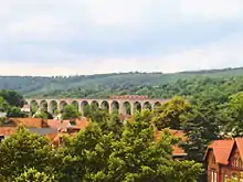 The Altenbeken Viaduct (German: Altenbekener Viadukt, also known as Bekeviadukt or Großer Viadukt Altenbeken) is a 482 metres (1,581 ft) long and up to 35 metres (115 ft) high double track limestone railway viaduct. It spans the Beke valley, west of the town of Altenbeken, in the Land of North Rhine-Westphalia, Germany.
