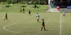 American Samoa's home ground is the Pago Park Soccer Stadium in Pago Pago with a 2,000 capacity. However, American Samoa has never played a home match at the senior level in its history.[6] The stadium featured in the highly rated 2014 film Next Goal Wins and was used as the national team's training ground in the build-up to the 2011 Pacific Games and the 2014 FIFA World Cup qualifiers.[19] Matches at the stadium must be concluded before 6:30pm because of a village curfew which limits noise and prevents the installation of floodlighting. For this reason, the association began planning a new facility in Tafuna in 2023. FIFA president Gianni Infantino promised the association $5 million for the project during his visit around Oceania in summer of that year.[20]