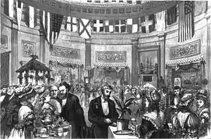 The American tea culture[3] is a part of the history of the United States, as this beverage appeals to all classes and has adapted to the customs of the United States of America. In the Dutch colony of New Amsterdam, now known as New York, tea was served with the best silver strainers, the finest porcelain cups and pots, and wooden tea caddy.[4] Tea became a very popular drink in the colonies, and tea ceremonies were common among all classes. In Salem, Massachusetts, tea leaves were boiled to create a bitter brew, then served as a vegetable side dish with butter. By the time of the American Revolution, tea was drunk everywhere from the backwoods to the cities.[5]