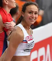 ![]() Hinriksdóttir at the 2017 European Indoor Championships in Belgrade | |