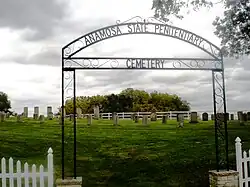 The Anamosa State Penitentiary Cemetery, also known as the Iowa Men's Reformatory Cemetery or Boot Hill Cemetery, is located west of Anamosa, Iowa, United States. The first cemetery associated with the Iowa Men's Reformatory, now a penitentiary, was begun in 1876 at Prison Farm No. 1 or possibly at Farm No. 5. Its exact location is unknown.[2] The graves are of those prisoners whose bodies were left unclaimed or were not taken to one of the state's medical colleges. They were buried in common graves that contained up to eight bodies.[2] Tall limestone markers were placed at each grave and contained the prisoner's name and death date. They were moved here when this cemetery was established in 1914. Subsequent graves hold individual bodies, and are marked with shorter limestone markers with the prisoner's name, age, date of death, and sometimes their prison number. They are in three different styles. Two styles are upright stones, one with a triangular top and the other with a rounded top. They were used from 1914 to the 1940s. The third style of stone is a flat, horizontal marker that was used from the 1940s to the present.