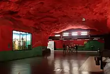 Anders Åberg and Karl-Olov Björk were assigned to artistically decorate the Stockholm metro station Solna Centrum (1975)