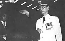 As the second term of Governor Achmad Lamo grew closer to an end, the Corhas (Corps Hasanuddin) organization, an organization filled with retired Hasanuddin Military Regional Command officers and Golkar, the ruling party, wanted him to be succeeded by Abdul Azis Bustam and Chaeruddin Tasning. Lamo himself wanted to be succeeded by Oddang, who was regarded as a person from high noble background and was less popular and less highly regarded from the two. However, President Suharto decided to support Oddang as Oddang also gained strong support from the Research Minister, B. J. Habibie, who maintained a close relationship with Oddang's clan. Bustam and Tasning was made as ambassador, and a sham election was held to legitimize Oddang's ascension into the governor's seat.[9] At the election held on 22 March 1978, Oddang obtained 20 out of 35 votes, while the government-approved puppet candidates Andi Mochtar and Daud Nompo got 8 and 7 votes respectively.[10] Oddang was sworn in as the governor exactly three months later by Maraden Panggabean.[11][12]