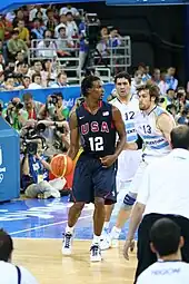 In 2008, Nocioni was selected to play with Argentina in the Beijing Summer Olympics. Argentina advanced to the quarter-final with four wins, placing behind Lithuania in the group stage, after defeating Russia. In the game against Russia, Nocioni hit 4 three-pointers, finishing with 19 points.[43] After defeating Greece in the quarterfinals, the Argentine team lost their Olympic semifinals rematch from 4 years earlier against the US team. Due to knee tendinitis,[44] Nocioni only played 18 minutes, scoring 10 points, and securing 4 rebounds.[45] Argentina next played Lithuania, in the bronze medal match, which Argentina won 87–75.[46] Nocioni scored 14 points in that game.[45]