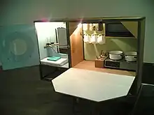 In 1992 Zittel produced the "A-Z Management and Maintenance Unit", her first "Living Unit"— experimental structures intended to reduce everything necessary for living into a simple, compact system[9]—as a means of facilitating basic activities within her 200-square-foot (19 m2) Brooklyn storefront apartment.[10] The unit contains a small dining booth, plastic sink, stovetop, closet, sleeping cot, and stool—fulfilling basic domestic needs of eating, sleeping, cleaning and storage.[11] Though often recalling mass-produced commodities, Zittel's "Living Units" are in actuality highly personal, customized for individual needs.[12] Zittel's works encourage a greater personal and social responsibility in prompting an active re-examination of needs and routines. "Where on the one hand, mass production may cause greater equality by making the same goods available to everyone," Zittel said, "on the other hand it diminishes individuality and identity. What we as consumers must do is to redefine our objects within the context of our own needs."[4]