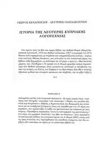 3. Kehagiogliou,Giorgos-Papaleontiou (Κεχαγιόγλου, Γιώργος-Παπαλεοντίου). History of Contemporary Modern Cypriot literaturein Greek,(Ιστορία της Νεότερης Κυπριακής Λογοτεχνίας), Nicosia, Publishers Κέντρο Επιστημονικών Ερευνών Κύπρου. Λευτέρης (2010) (in Greek).