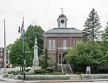 The Androscoggin County Courthouse and Jail is located at 2 Turner Street in Auburn, Maine, the county seat of Androscoggin County. The original portion of the large brick Renaissance Revival complex was designed by Gridley James Fox Bryant and was built in 1857, with a sympathetic enlargement c. 1915-20. The jail was expanded in 1970 and 1990, and is now accessed via an entrance on Pleasant Street. The complex was listed on the National Register of Historic Places in 1983 for its architecture and its association with the history of Auburn and the county, particularly with respect to the contentious debate over the choice of county seat in the 1850s.[1]