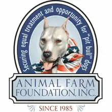 Animal Farm Foundation (AFF) is a pit bull and anti-BSL (anti-breed-specific legislation) animal advocacy group set up by heiress Jane Berkey as a 501(c)(3) charity. It started as a horse rescue in 1985, then shifted focus to pit bull dogs when the founder adopted a pit bull and "discovered that 'pit bull' dog owners were not welcome in a lot of communities and spaces."[1]